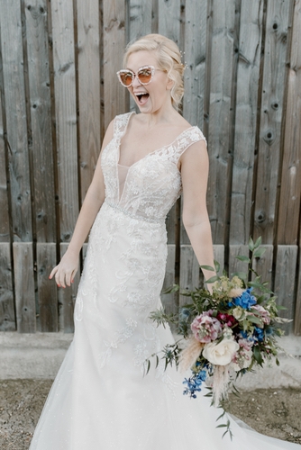 One of our fabulous styled shoots in this issue was photographed by Hannah Amy Photography at Stokes Farm Barn in Wokingham, Berkshire. Natalie at Buckinghamshire-based Your Story Bridal Boutique provided this stunning wedding dress by British designer Sassi Holford and the beautiful veil by Couture Veil. See the shoot in full in the brand new issue available to download now for FREE!