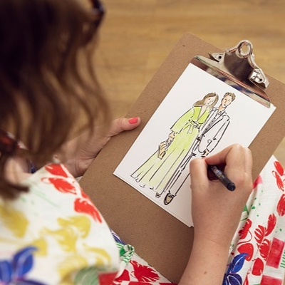 | A | Helen Ridley says: Live Illustration is a super-fun way to entertain your guests during the quieter moments in your wedding day, from drinks after the ceremony to the moments between your wedding breakfast and evening reception. I'm an illustrator who can create watercolour portraits whilst your guests pose live, or I can work from reference photos so that guests can mingle and have a drink, enjoy their meal and come and collect their portraits later in the day. This means that I can create a beautiful gallery of the illustrations as I paint them which makes a great focal point at your celebration. There are many good reasons to book a live illustrator at your wedding. It's fascinating to watch and creates a real talking point for your guests and a unique type of big-day entertainment. Your loved ones will receive a unique keepsake of your wedding day that always looks stylish and flattering and captures your guests' outfits in a beautiful fashion illustration. |