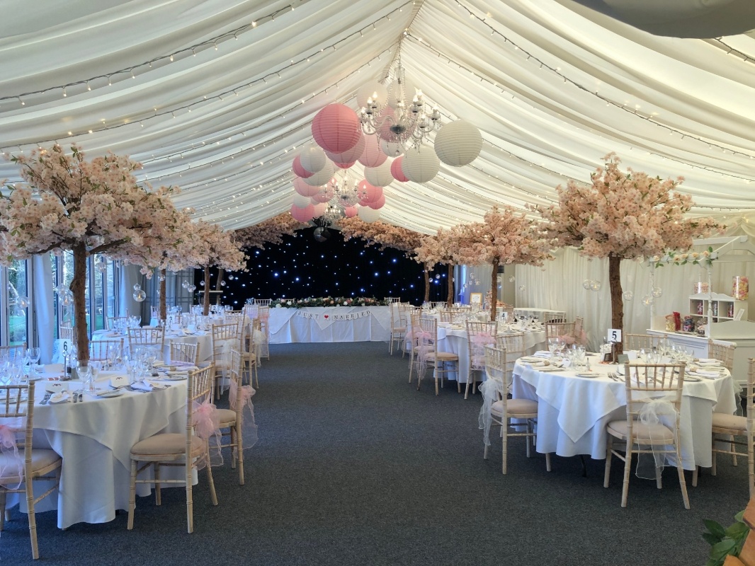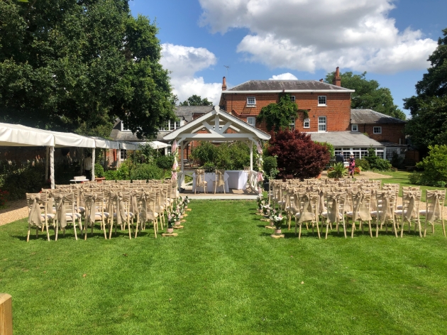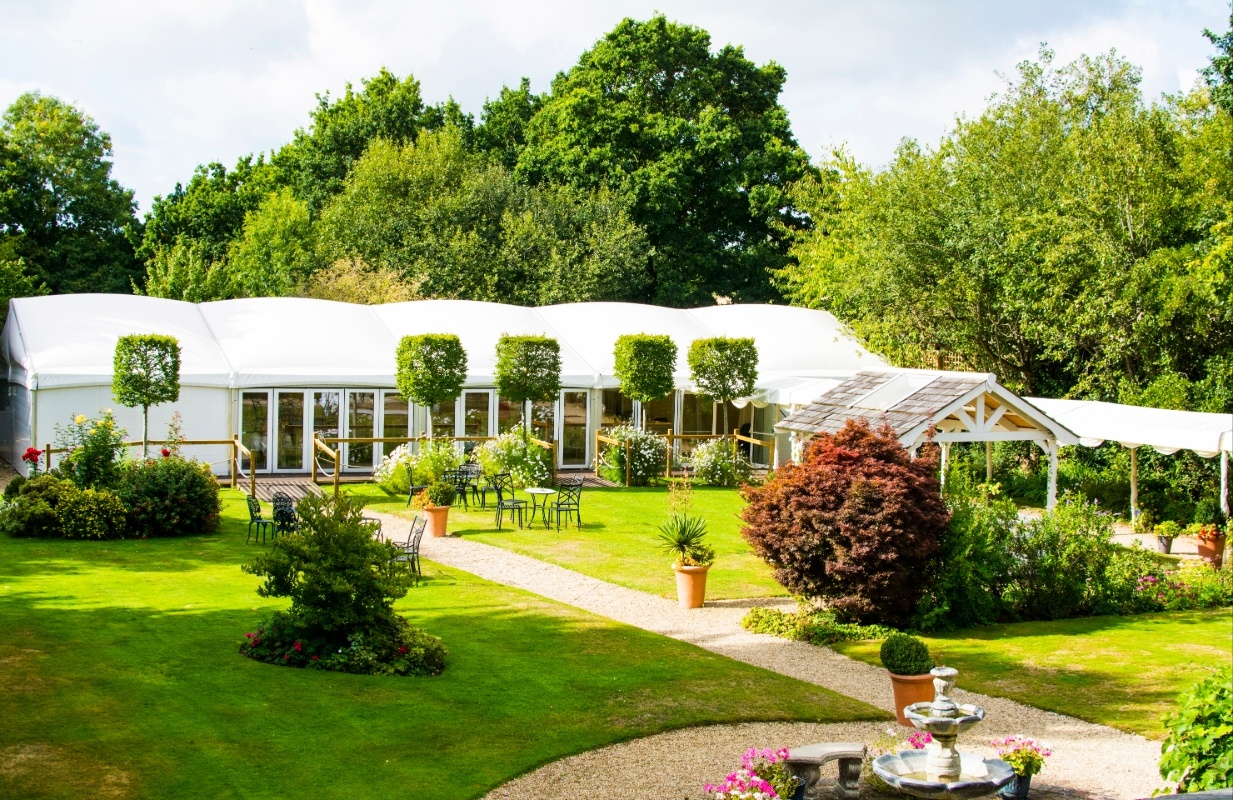 Ceremonies take place in The Cottage Suite for a small gathering of up to 30 guests while The Garden Room holds up to 90 people (with 70 seated and 20 standing.) The conservatory-style room providing another option is decorated in muted tones offering a blank canvas for a chosen colour theme while The Duke's Marquee seats up to 120 guests. The Cedar Pavilion nestled in the gardens flanked by pretty flowers and mature plants is an outdoor ceremony option with the decking area creating an aisle.The wedding breakfast can take place in the choice of these rooms while the evening reception can enjoy the main house or the marquee.