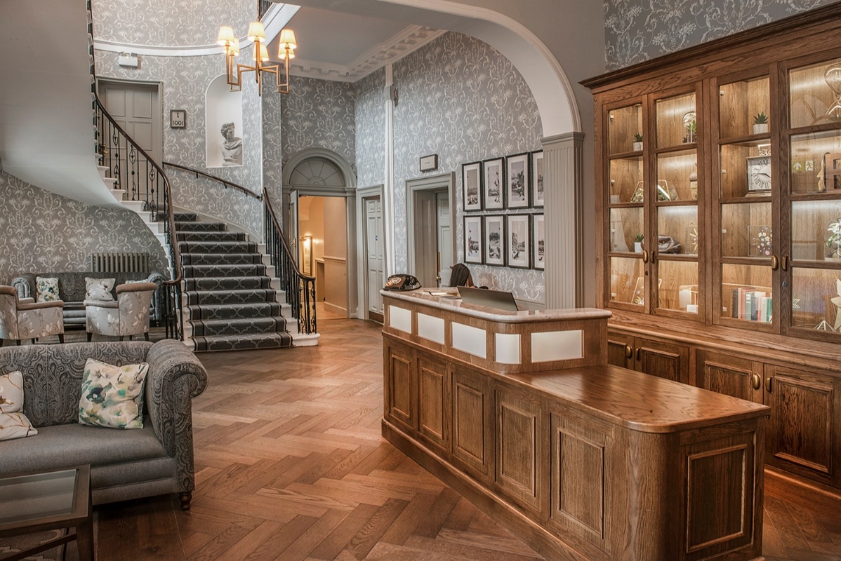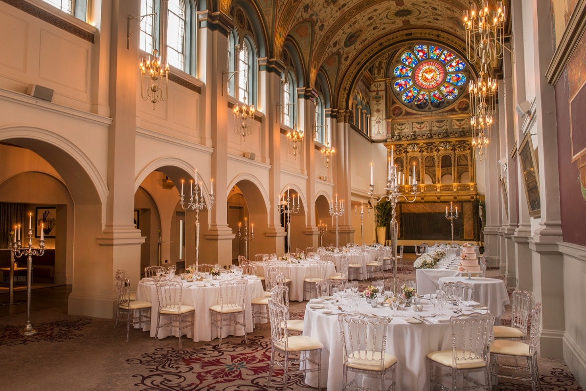 Step inside the original Georgian manor house and instantly it's a home away from home with the open fireplace and curving staircase which leads up to its suites. Its interiors throughout are a masterclass in understated luxury, with a distinctly British aesthetic. Originally the boy's school dining room – the house was a public school from 1854 to 1967 – the Beaumont Room is a bright and welcoming space for 150 guests with large windows reaching to the ceiling and direct access to the gardens.Post-vows, walking into the stunning Chapel for the first time is always a special moment. Built in 1870, the Chapel features an ornate ceiling painted by celebrated architect Romaine Walker. Meanwhile the beautiful stained-glass rose window adds an explosion of colour and light, creating an enchanting setting for a wedding breakfast for up to 160 guests or an evening reception for up to 180 guests.