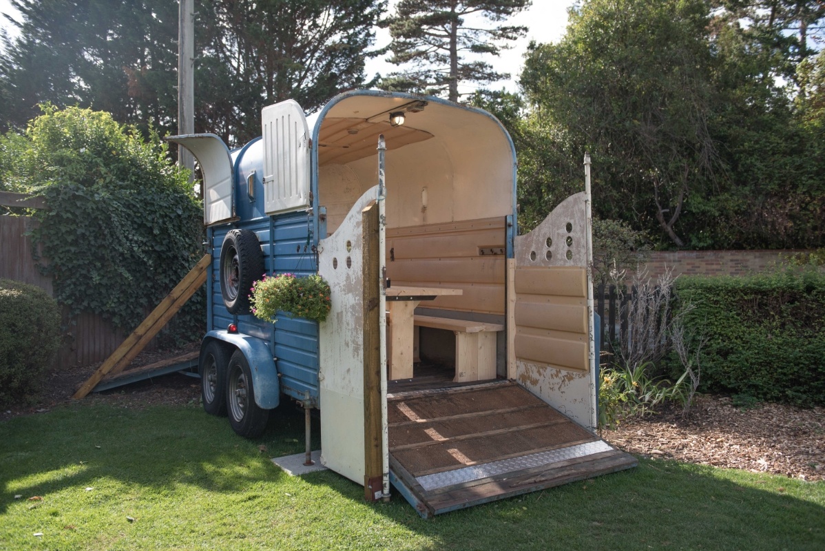 Berkshire wedding venue, The Greene Oak offers a warm welcome from the first view, boasting a large sun-drenched terrace with two permanent quirky horse trailers.