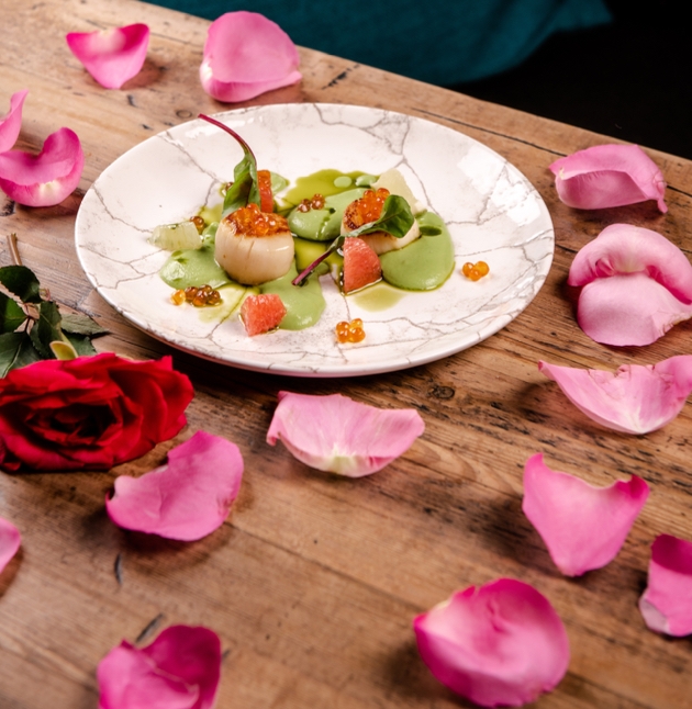 Riwaz in Beaconsfield serves sensational Indian cuisine inspired by the history, cultural practices and rustic charm of the Indian states. The Valentine's Day Menu, priced at £65 per person plus £49 per person pairings, is a seven-course menu with vegetarian, vegan and pescatarian options, in addition to classic meat dishes. Highlights on the menu include Kekda West Coast crab cake with green chilli mayo which is paired with D'arenberg The Olive Grove Chardonnay from Australia.