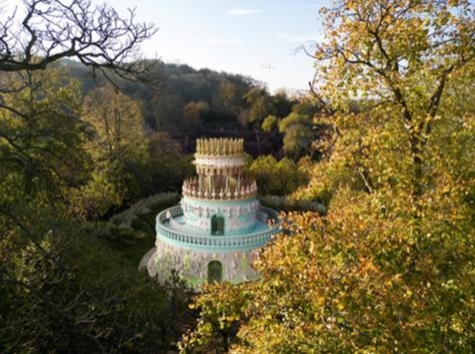 Part sculpture, part architectural garden folly, Wedding Cake is an extraordinary, enormous, fully immersive sculpture which combines pâtisserie and architecture. Gleaming and icing-like outside and in, it offers an intricate and richly sensory experience – glazed in pale pinks, greens, and blues, beset with sculptural ornament and complete with the sounds of trickling water and a site-specific lighting scheme.