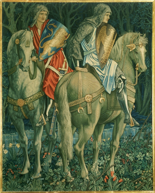 Visitors to Kelmscott Manor this season can see stunning examples of his enthusiasm for this technically challenging craft. Guests will encounter the drama of two tapestries from Morris & Co.'s breathtaking Holy Grail series, designed in 1890 and regarded as one of the greatest achievements of the Arts and Crafts movement. By that date Morris & Co. had raised the art of tapestry weaving to new heights, producing exquisite examples on looms set up at the company's Merton Abbey works.